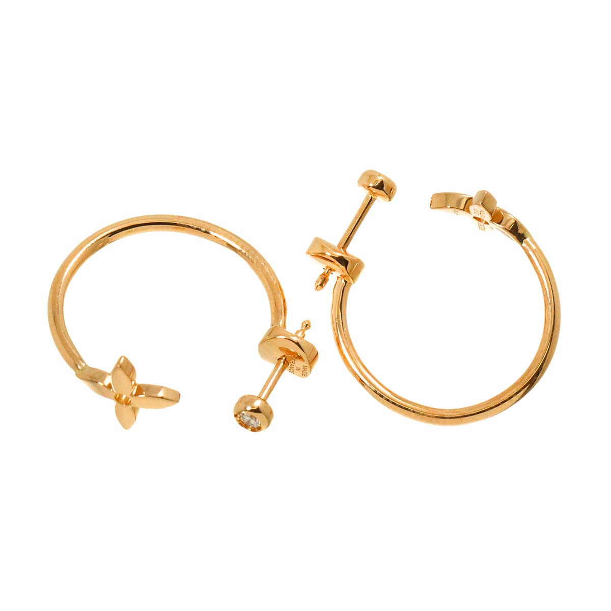 Flower Diamond Earrings Pierced 18K PG 750