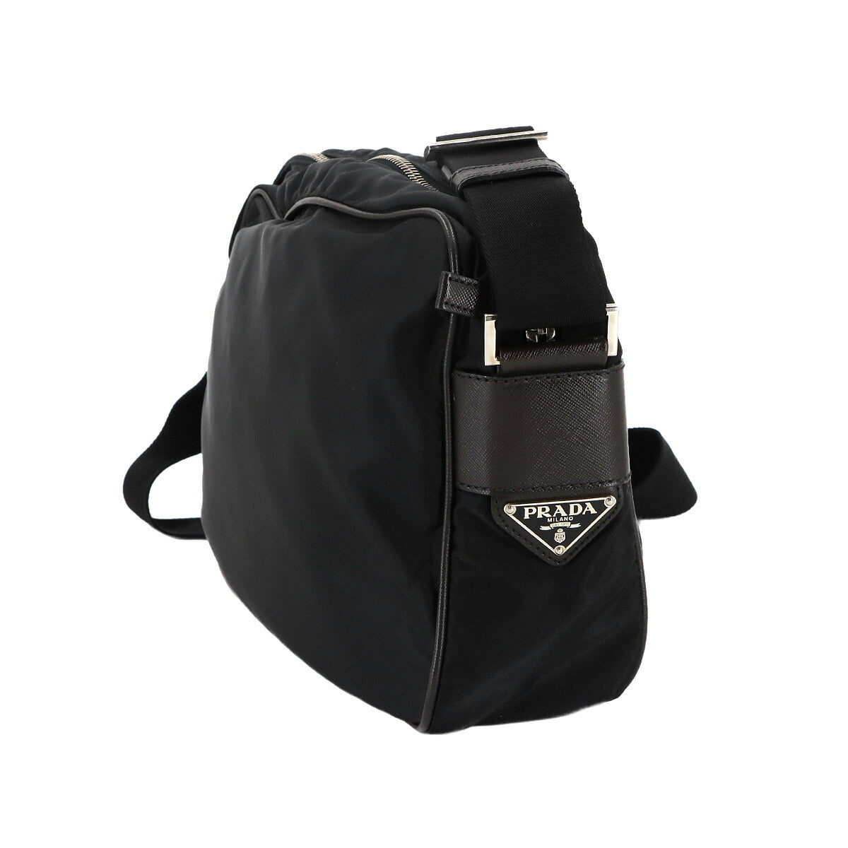 Shoulder Bag Nylon Saffiano Leather Black Brown VA0772 Purse